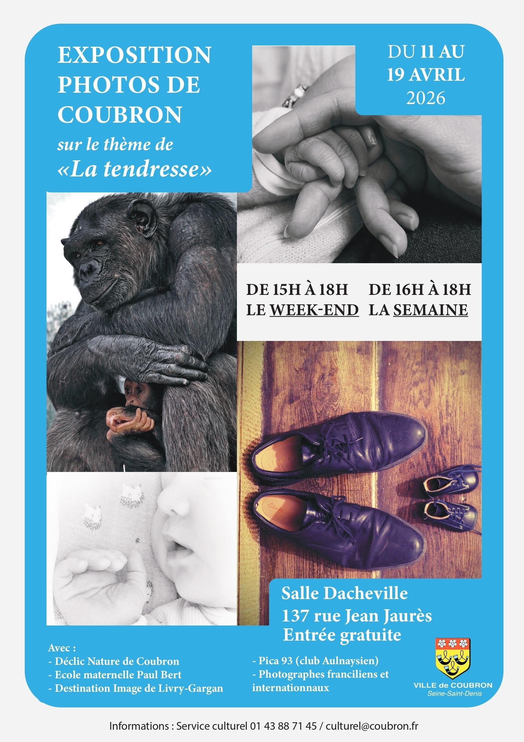 Venez découvrir l'exposition photo sur le thème de la Tendresse organisée par le Service Culturel en collaboration avec Déclic Nature, l'école maternelle Paul Bert, Destination image, Pica 93 et des photographes franciliens et internationaux.